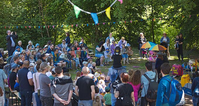 Das abwechslungsreiche Programm hatte für alle etwas im Angebot. Neben Trommel-Schnupper-Kursen, Schnitzen, Lagerfeuer und Stockbrot konnten die Kinder beim Kids-Lauf mit dem Verein HartfüßlerTrail e.V. auf 800 Metern Strecke zeigen, dass dabei sein alles ist. Ein besonderes Highlight war das fast zweistündige Mitmach-Theater von Eddi Zauberfinger (Dennis W. Ebert). Mit seinen Mitmach-Liedern zu Umweltthemen begeisterte er das Publikum und schuf ein spontanes Mitmach-Musical, bei dem die Kinder aktiv mitwirken konnten. Das Publikum war begeistert von der einzigartigen Show.